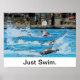 Motiverande poster för simmare, med uppmuntran att komma till bassäng och göra klaffarna