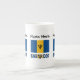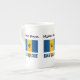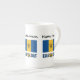 Benporسل muggen med den Barbadiska flaggan och ordet BARBADOS under i flaggans färger. En plats för ditt namn möjliggör ett personligt utseende. Om du behöver en skräddarsydd present lägg bara till någon annans namn. Den Bajanska flaggan är ultramarin och guld med en svart treudd. Designen visas på tre sidor av muggen.