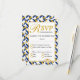 Svarskort för OSA i elegant bröllop med gräns i BARBADOS i mönster och guld i sidled. Det omvända budskapet lyder: "Och de två skall bli ett". Matchande objekt är tillgängliga. Texten kan anpassas helt och hållet med ditt eget meddelande och innehåll. Kan användas både för bröllop och för andra firande. Var stolt över ert arv på er speciella dag.