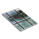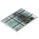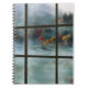 Ett kyligt höstlandskap som ses genom ett frostigt fönster tidigt en morgon. Fir och gräs träd med is som vitar nål, äpplen i röda nyanser, orange och gult, frostvita gräs som ses genom dimman och som stigning från en gömt ström. Nära fönstret på båda sidor står röd-grönt ro löv.