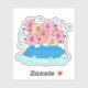 Roligt-dekal med lycklig tecknad grisar som har bassäng party. Handritad, digital färgad för dekorering av din bärbara dator, journal etc.