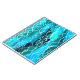 En bärbar dator som fångar spiral och som har ett täcke av ljusblått turkos med en vit abstrakt "vågar mönster, från en vattenfärgsdesign av Judy Adamson. Andra produkter med den här designen finns i min butik.