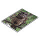 Bärbar Uggla-dator. En vacker vuxen barred uggla på en träd. Foto av Brian Kraus.