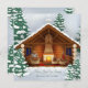 Vänner och familj i inbjudan för att samlas med den här charmerande bilden av kabinen. Björnfamiljen runt elden anger tonen för varma samtal, bra mat och en festkväll tillsammans.