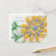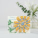 Skicka den här gulten och vykortet med blå daisy för att hälsa någon du kärlek. Läser "Ha en solig dag!" eller anpassa dig med ord eller ta bort texten för att njuta av det okomplicerade nålarbetet på egen hand. Foto av en vintage näsduk.