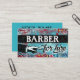 Färgrika affärskort av barber i turkos, akva, rött, gult. Barber för att anställa affärskort.