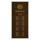 Pris lista över exklusiver för barberfrisyr i faux guld på mörkens bruna läderbakgrund. Observera att läderutseendet och guld-effekten skrivs ut.