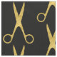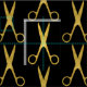 Hårsaxar i guld glitter på fast svart bakgrund.