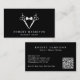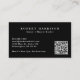 Ett enkelt maskulinsvart affärskort för barber och barberbutiker som har modern vit typografi och en abstrakt som illustrerar en vit skål och saxar som bildar ett jacka lapels. På baksidan lägger du till URL:en för webbplatsen adress för att skapa en skannerbar QR-kod för dina klienter för att söka efter mer information.