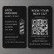 Gör ett djärvt första intryck med detta eleganta svarta och silver-affärskort designat för frisörer, hårslistar och moderna groomande professioneller. Den här utformningen är perfekt för lodrät, digitalt anslutna butiker och har en snyggt, en minimalistisk barberikon och en skannerbar QR-kod för omedelbar bokning eller åtkomst till social. Fullständigt anpassade med ditt namn, din kontaktinformation och social-handtaget.