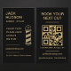 Give your barbershop brand a premium, standout look with this black and gold barber business card featuring a built-in QR code for instant access to your booking page, portfolio, social media, or website. The luxurious black background paired with bold gold accents creates a powerful, modern, and stylish design that grabs attention. Clean typography showcases your name, services, and contact information clearly. Perfect for barbers, grooming specialists, and haircut professionals who want a polished, memorable, and high-end presence. Fully editable and print-ready.