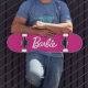 Den ikoniska barbie-logotypen på ett skateboard-däck.