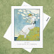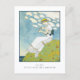 Ett vykort med illustrationen konsthändelse Un Peu Petite Robe de Campagne av George Barbier (1882-1932) En kvinna på en sida i en vit land-klänning som håller en daisy. En digitalt förbättrad bild från tidskriften Gazette du Bon Ton i Fransk mode.