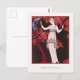 Ett vykort med illustrationen Fransk mode, The Träd of Science (L'abre de Science) (1914) av George Barbier (1882-1932). En digitalt förbättrad bild från Gazette du Bon Ton. En kvinna på en blek rosa-kväll klär sig vid träd med en blå fågel på armar och ben.