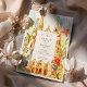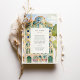 Fira din speciella dag med den här fantastiska bröllopssviten och fånga Barcelonas unika arkitektoniska underverk, designade av Antoni Gaudí. På framsidan av inbjudan finns en skarp vattenfärg som illustrerar den ikoniska Sagrada Família, vars berömd spirar når fram till ett mjukt, färglöst himmel, inramat av glatta blommor med rött/orange och gult, stiliserade blommor och vitaktig löv av grönt. Den konstnärliga renderingen ger denna världsberömda landmärke en levande och berömmande känsla. Baksidan, designad för "The Finer Details", visar ett annat Gaudí-mästerverk, Casa Batlló. Dess vita fasad, med de distinkta mosaikliknande tak-plattorna och de ekologiskt formade balkongerna och fönstren, återges på ett utmärkt sätt i samma uttryckliga vattenfärg stil. Det här sviten är perfekt för ett destinationsbröllop i Barcelona, en arkitektur eller ett konsttemat firande, eller för ett par som hyllar den katalanska modernismens uppfinningsrika anda och önskar ett verkligt unikt och konstnärligt tillkännagivande för sitt bröllop.