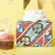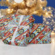 En underbar blommigt och geometrisk design med terra cotta och blå accents.