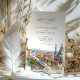 Få dina gäster upphetsade över ditt kommande bröllop i Barcelona med det här fantastiska Rädda datumkortet med en vacker vattenfärgsgrafik från stadens ikoniska Park Guell. Barcelona, som är känt för sin fantastiska arkitektur och rik, är perfektens destination för ett bröllop. Staden är särskilt berömd för sin unika och färgstarka art nouveau-arkitektur, med Antoni Gaudis mästerverk som Sagrada Familia, Casa Batllo och La Pedrera. Park Guell, som är skild från detta konstverk, är en vacker offentlig park fylld med Gaudis fantastiska mosaikverk och skulpturer. Det är en populär plats för par att ta bilder och beundra stadens panoramabilder. Se till att gästerna inte missar den här oförglömliga upplevelsen med det här Spara datumkortet.