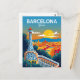 Celebrate the unique artistic spirit of Catalonia with this vibrant vintage-style travel postcard for Barcelona, Spain. The artwork features Antoni Gaudí's iconic mosaic (trencadís) tower and architecture from Park Güell, overlooking the colorful, sun-drenched cityscape. This design perfectly captures the essence of Spanish modernism and the Mediterranean atmosphere. It's ideal for lovers of Gaudí's work, Spanish travel, art and architecture enthusiasts, or collectors of bold, retro destination posters.