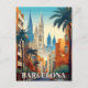 Bär din wanderlust med detta stilrena Barcelona, Spanien retro rese vykort!