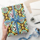 Denna geometriska cementplatta från Barcelona i Spanien gör det pappert med en underbar utformning för förpackning. Den här gulten brun och grönt mönster är inte bara för golv utan också för att slå in presenter. Plattformskonstruktion från Barcelona, Spanien. Ett traditionellt mönster från slutet av 1800-talet och 1900-talet i tidigt. Mycket färgstark och livlig, perfekt för merchandize. Få lite av Medelhavet i vardagsrummet och drömma om Katalonien. Barcelona är en spansk stad och bland många sak är det känt för sina färgstarka cementplattor. Dessa plattor formar mönster, ibland geometriskt, på golv och vägg. Plattorna är populära eftersom de ge en sådan Medelhavsliknande vintage ser ut och känns i ert hus. Som om du är i Spanien. Cementplattor bakas inte i ugn utan är en version av Portlandcement. Det första lagrar som används är färg mönster och det andra, tjockare, lagrar är grått-cementet lagrar. Sedan pressas de ihop. Den övre delen av mönster, lagrar, är täckt med grund-cementet lagrar. Denna typ av bricka är mycket hållbar.