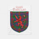 Barclay Scottish tartan plaid pattern design for the Barclay Clan Family underneath the red Lion Rampant Shield of Scotland.