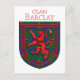 Barclay Scottish tartan plaid mönster-konstruktionen för Barclay Klan Family under den röda Lejona Rampant Shield of Scotland.