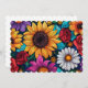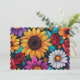 Skicka en spricka av färg och glädje med det här fantastiska platta hälsningskortet för blommigt, med en öga-fångstdesign av ljusa solblommor, ro och daisy. Perfekt för alla tillfälle kommer detta kort att göra det lättare för vem som helst att göra sin dag med sina djärva och levande teckningar. Oavsett om du firar en födelsedag, skickar ett tackkort eller bara säger hej, så ger det här kortet ett bestående intryck