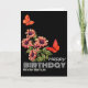 Bärbar Orange-fjäril och solrosdagskort - Modern svart design | Förstora någons speciella dag med det här fantastiska födelsedagskortet som innehåller pulserande orange-fjärilar som flödar runt en blommande solrosbukett, mot en fet svart bakgrund. Denna moderna och konstnärliga design fångar naturens skönhet i levande detalj, skapar den ett kort för perfekt för att fira en älskad persons födelsedag. Anpassa den med ditt eget meddelande för att lägga till en hjärtlig beröring. Oavsett om det gäller en vän, en familjemedlem eller en kollega är det här kortet säkert utmärkt med sin slående kontrast mot färg och elegant.