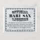 Officiell Bari Sax License. Det finns många verksamheter som omfattar olika typer av utrustning, t.ex. bildrift, flygplan osv., som kräver specialiserad utbildning och licenser. Skapar musik är något som vanligtvis kräver utbildning: lektioner, praktik och repetitioner. Borde det inte krävas av de blivande musikerna att de får tillstånd att använda utrustningen, dvs. deras musikinstrument?