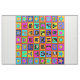 Alphabet Play Mat, Alphabet quilt, 56x56, rödblå grönt, gult rosa turkos, pastels orange lime green, barn alphabet quilt, contemporary quilt, contemporary alphabet-symboler, Virginia Vivier, Vagabond Folk Art, Southwest art, boho decor, indie art.