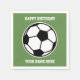 Födelsedagsfest av napkins för anpassningsbar fotboll. Små och stora pappra blöjor för fotbollsspelare och fläkt. Modern logotyp-design i boll med eget namn och citattecken. Underbar för barn födelsedag, tränare, mamma, pappa, son, dotter osv. Gör din egen bord-dekoration. Lämpligt för barn och vuxnor. Bakgrund för grönt eller anpassningsbar färg.
