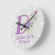 Barn Bedroom Clock. Konstruktionen har Monogram & Namn med blommor på båda sidor i vatten färg pastel stil. Exempel namn är Belinda. Byt namn så som du vill för alla med ett namn som börjar med B.