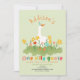 Barn Blommigt Grönt Ett Fånig går första födelseda Inbjudningar