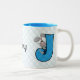 Barn Blue Jackkanit Monogram Brev J med Namn Två-Tonad Mugg