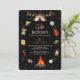 Fira din lilla äventyrares stora dag med denna livfulla campingfödelsedagsinbjudan! Med en djärv svart bakgrund visar denna iögonfallande design en lekfull arrangemang av färgglada campingsaker – inklusive tält, lykta, lägereld och mer – som cirklar runt födelsedagsdetaljerna. Perfekt för barn som älskar det stora utomhus, sätter denna inbjudan tonen för en spännande äventyrsfylld fest. Idealiskt för födelsedagar med teman som camping, natur eller utomhusaktiviteter!