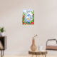 Denna fina affischdesign har en handmålad blå vattenfärg dinosaurie och en färgrik dschungel. Affischen kan anpassas med din pojkes namn. Perfekt för en ny babys barnkammare eller för ett rum för dinosaurieälskande barn.