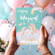 Ett fantasifullt Alla Hjärtans-dags-kort för barn designat med en magisk stjärna, regnbågar, enhörning, fjärilar och falskt guldglitter.