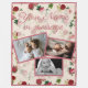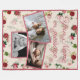 Den här nyckelfilten har en gräddbaksida med en vintage blommigt stil mönster i rosor. En exempeltext skrivs ut nära överkanten i ett teckensnitt med elegant färg som du kan anpassa för att inkludera ditt eget namn eller eget meddelande. Tre exempelfoton placeras nära mitten och grund i filtret med matchande gräns för ro färgad. En delvis genomskinlig krämbakgrund överlappar blommorna så att dina foton och namn syns. Det är perfektens gåva till mamma, mormor, underbarare mormor eller andra speciellare människor i vårt liv.