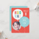 Den här moderna födelsedagsinbjudan till barn har en samling ballonger med regnbågsfärgad HOORAY-text och foto av födelsedagsbarnet. Anpassningsbar text i vitt och födelsedagsdetaljer inuti ballongen gör det roligt, samtidigt som det är modernt och fräscht. Den oväntade färgpaletten gör den perfekt för både flick- och pojkfester. Koordinerande färg på baksidan. Ytterligare festartiklar, som frimärken, tackkort och festsmycken, finns i samlingen Ballongbuketter av Stacey Meacham.