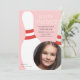 En modern, fotofödelsedagsinbjudan för en bowlingfest med bowlingkäglor och cirkulärt fotoöppning. Bjud in vänner till en bowlingfest med en rolig, ljus, grafisk inbjudan. Perfekt för både barn, vuxna, pojkar och flickor.