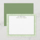 Lysa upp dina anteckningar med dessa Gingham-kort, personliga med ditt namn. Den gröna bakgrunden med ett klassiskt gingham-mönster ger en glad touch till alla meddelanden. Perfekta för tackkort, inbjudningar eller vardagsbruk, gör dessa platta kort dina meddelanden speciella och personliga. Anpassningsbara med ditt namn är de ett stilfullt sätt att knyta an till vänner och familj. Detta personliga Gingham-papperstillbehör ger en varm och personlig touch till dina brev och anteckningar.