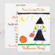 Barn Halloween fest! Inbjudningar till Anpassade Halloween fest. Lägg till dina egna detaljer i minuter på framsidan och baksidan av Halloween Inbjudan! Cute child teckning från en liten flicka utklädd som häxa med sin väska i bus eller godis. Måne och stjärnor finns i himlar och det finns en karvpumpad pumpa på hennes sida. Varje inbjudan har ett kuvert. Underbar för ett barns Halloween fest!