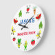 Besnåla Monster-frukthögar, barnklocka, med morot, vattenmelon, päron, tomat, banan och ananas. Den här designen kan anpassas med namn eller text. En unik design från min monsterserie för frukt och grönsaker.