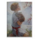 Ett härligt barninnehav som en kanin som knäfaller på gräset, tittar till den härliga bekräftelsen för himmel, dop eller precis ett mycket sött kort