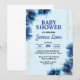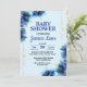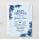 Rik och färglöst blåa blommor med guld-skiljelinje, babyduschinbjudan, ändra texten själv när du beställer
