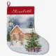 Barn i julgran Snögubbe ger vinter-scenen Stor Julstrumpa