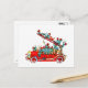 På vykortet finns en illustration av den ursprungliga vattenfärgen. En teckning av ett detaljerat rödbrand lastbil med en massa barn. Underbart vykort för en liten brandman eller en framtida brandman. Tillverkad av Ans Collijn.