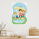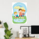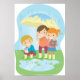 Barn leker i regnet under ett paraply. Den här designen ser ut att vara verkligen på dessa Poster