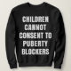 Tittar för en unik och söt sötskjorta för att stödja icke-binär föräldrabehandling, gender och gender? Titta bara på vår "Barn kan inte samtycka till pubertetsblockerare"-tröja! Den här tröjan är en perfekt för att visa din ställning för naturlig gender, praktisera samtycke och lära barn om samvete och gendernas komplexitet. Dessutom är det säkert att starta en konversation om transsexuella, gender kirurgi och gender!