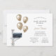 En baby shower via post-inbjudan är perfekt för dem som bor på långt avstånd från nära och kära, men ändå vill överösa den blivande mamman med kärlek och presenter för att förbereda för barnet. Denna inbjudan till långdistans shower via post har en handmålad brevlåda fylld med gyllene ballonger och den begärande dikten "Vi kan inte träffas